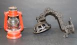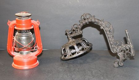 387 Iron Kerosene Lamp Holder, Red Tin Made in Japan Lantern
