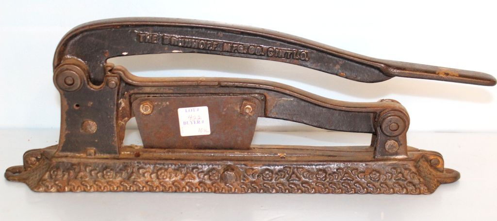 Large antique iron cigar cutter; 17 1/2" w., 5 1/2" h. Large antique iron cigar cutter; 17 1/2" w., 5 1/2" h.