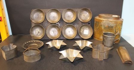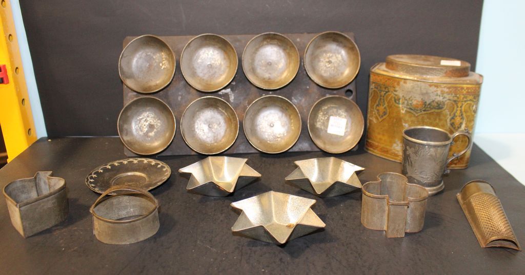 Tea box, cookie cutter, grater, cup Tea box, cookie cutter, grater, cup