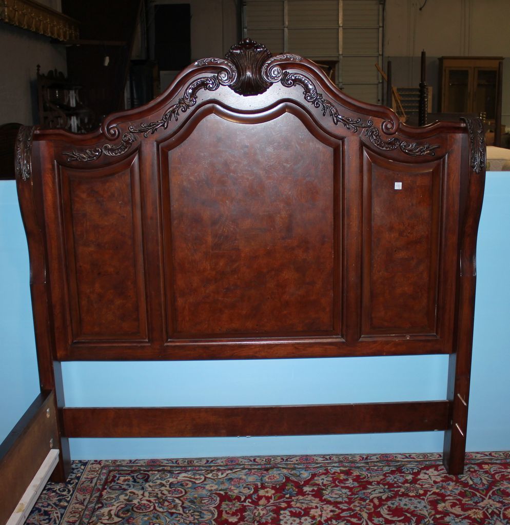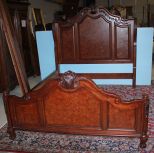 Panel headboard, curved footboard, heavily carved bed; 68" h. Panel headboard, curved footboard, heavily carved bed; 68" h.