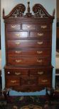 Chippendale style carved Highboy with bonnet top; 37" w., 16" dia., 80" h. Chippendale style carved Highboy with bonnet top; 37" w., 16" dia., 80" h.