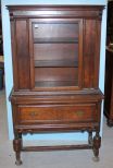 Depression era China cabinet with center glass door, having interior shelves; 38" w., 17" dia., 66" h. Depression era China cabinet with center glass door, having interior shelves; 38" w., 17" dia., 66" h.
