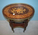 Bras gallery, inlay empire style side table with bronze mounts; 23" w., 17" dia., 30" h. Bras gallery, inlay empire style side table with bronze mounts; 23" w., 17" dia., 30" h.