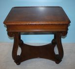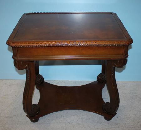Contemporary empire style scroll leg side table; 32" w., 23" dia., 30" h. Contemporary empire style scroll leg side table; 32" w., 23" dia., 30" h.