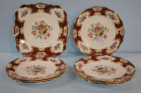 "Lady Fayre" small cake plates and seven matching plates, 8" "Lady Fayre" small cake plates and seven matching plates, 8"