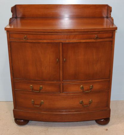 Cherry Server with butlers tray, two door, three drawers supported by large bun feet; 36" w., 18" dia., 43" h. Cherry Server with butlers tray, two door, three drawers supported by large bun feet; 36" w., 18" dia., 43" h.