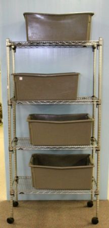 Super Erecta Shelving; 35" w., 18" d., 73 1/2" h. Super Erecta Shelving; 35" w., 18" d., 73 1/2" h.