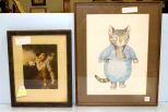 736 Boy and Rabbit Hand Painted Print & Picture of Dressed Up Cat