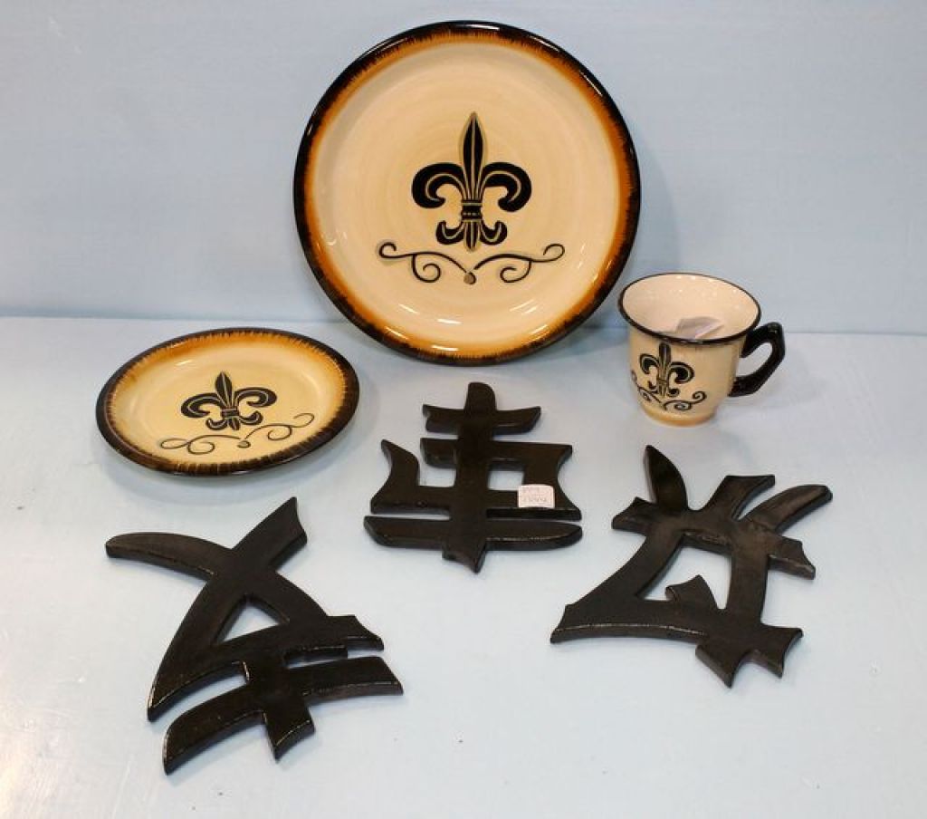 809 Hollywood Casino Mug & Three Black Ceramic Oriental Decors