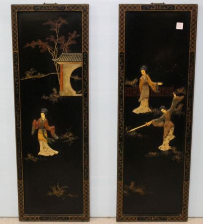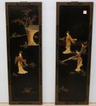 855 Two Black Lacquer and Carved Oriental Plaques