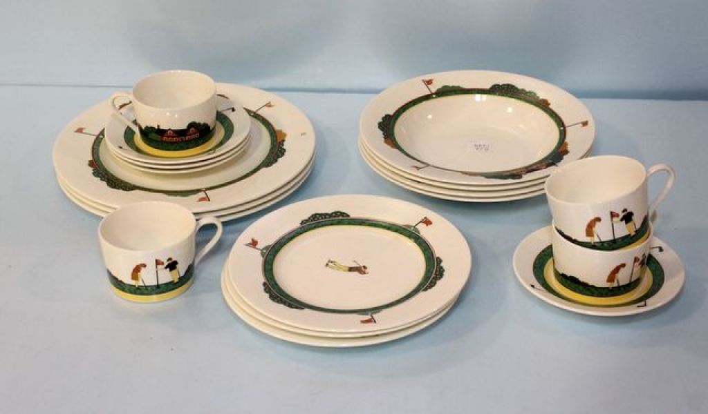 Three salad plates, three dinner plates, four soup bowls & four cups/saucers Three salad plates, three dinner plates, four soup bowls & four cups/saucers