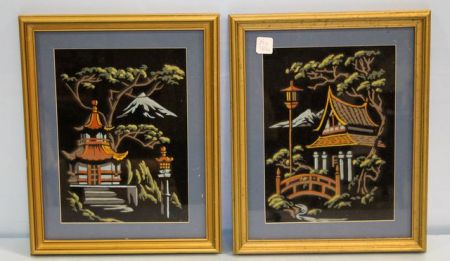 894 Two Framed Oriental Velvet Pictures