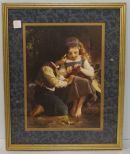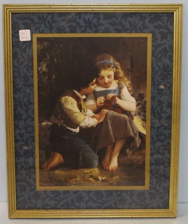 967 Print of Girl Knitting With Boy In Gold Frame