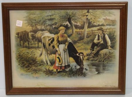 972 "Before Marriage" Print of Woman and Man With Cows