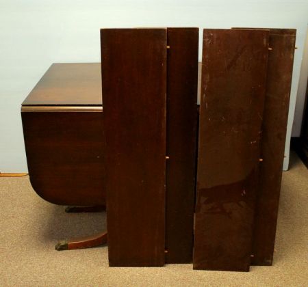 Has four 10" leaves.; 30" w., 30" h., 42" d. Has four 10" leaves.; 30" w., 30" h., 42" d.
