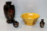 1127 Three Oriental Vases & Octagon Shaped Bowl
