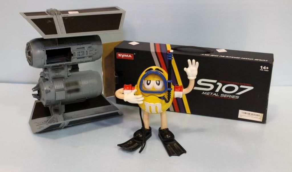 Tx fighter bomber (12x12) Star Wars ship, yellow M&M radio AM/FM, S107 metal series remote control mini helicopter (comes with control) Tx fighter bomber (12x12) Star Wars ship, yellow M&M radio AM/FM, S107 metal series remote control mini helicopter (comes with control)
