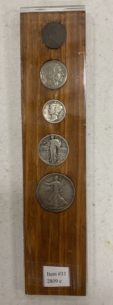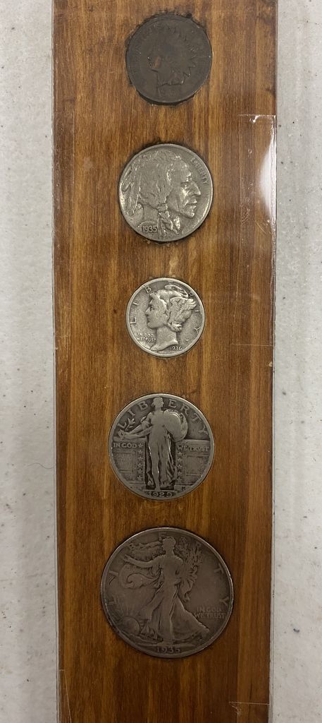 Classic Obsolete Coin Collection, 1901 Indian cent, 1935 S Mint Buffalo Nickel, 1936 90% silver Mercury Dime, 1929 90% silver Standing Liberty Quarter, 1935 S Mint 90 % Silver Walking Liberty Half Dollar Classic Obsolete Coin Collection, 1901 Indian cent, 1935 S Mint Buffalo Nickel, 1936 90% silver Mercury Dime, 1929 90% silver Standing Liberty Quarter, 1935 S Mint 90 % Silver Walking Liberty Half Dollar