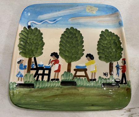 "Fish Fry" Clementine Hunter Collection Tray, Gitter Gallery 2012, 15" Location Left Metal Shelves "Fish Fry" Clementine Hunter Collection Tray, Gitter Gallery 2012, 15" Location Left Metal Shelves