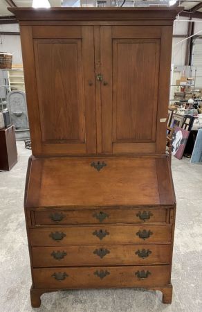 19th Century Chippendale Style Secretary Bookcase, two piece, drop front desk, four drawers, good condition, 79"h., 20"d., 39"w. Location 2nd Row. Location: 6th Row 19th Century Chippendale Style Secretary Bookcase, two piece, drop front desk, four drawers, good condition, 79"h., 20"d., 39"w. Location 2nd Row. Location: 6th Row