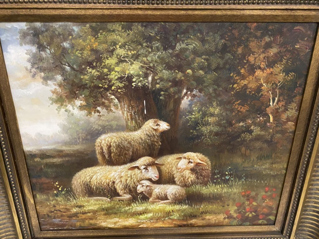 Heavy Gold Gilt Framed Sheep Painting, on canvas, 31"h., 34"w. Location Left Office Heavy Gold Gilt Framed Sheep Painting, on canvas, 31"h., 34"w. Location Left Office