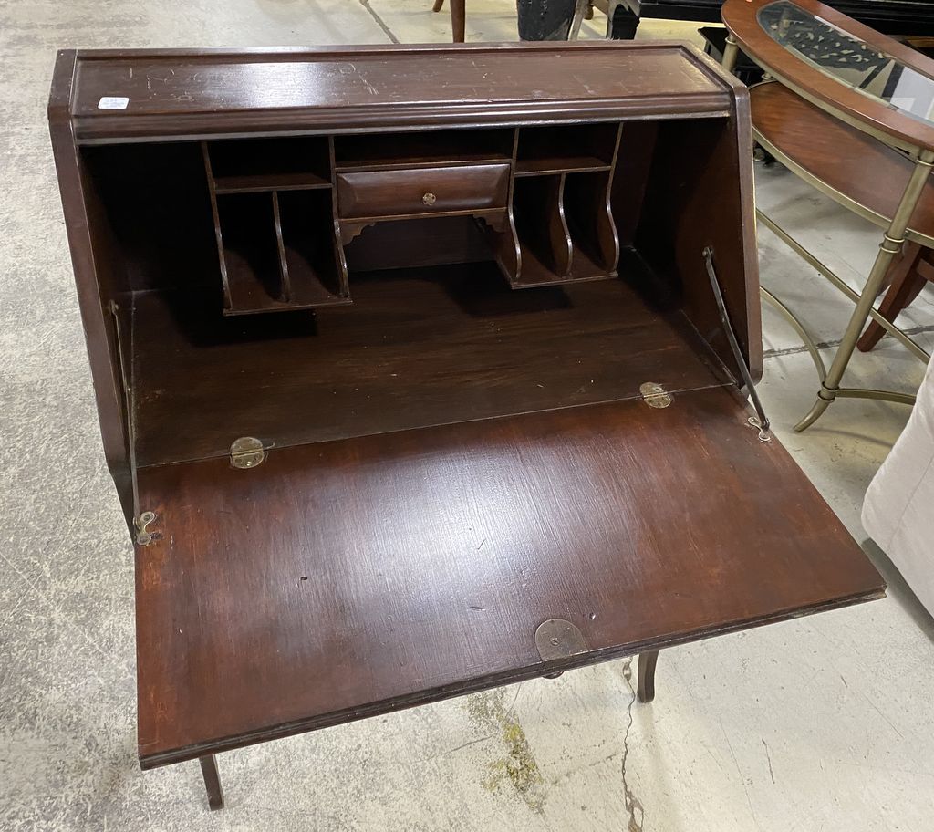 Antique Mahogany Secretary, drop front writing desk, two drawers, 40"h., 30"w. Antique Mahogany Secretary, drop front writing desk, two drawers, 40"h., 30"w.