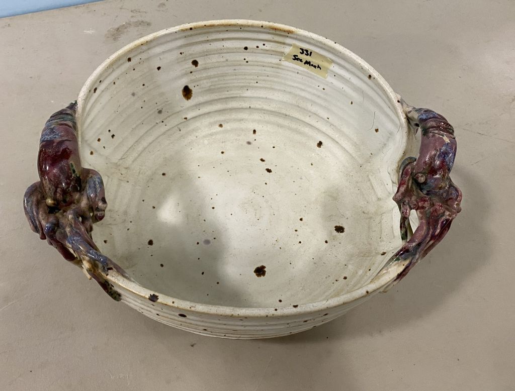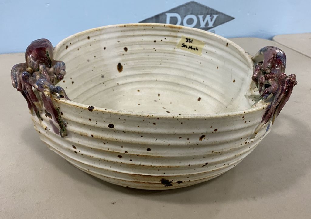 Lobster Stoneware Signed Bowl, hand crafted, 12"dia. Lobster Stoneware Signed Bowl, hand crafted, 12"dia.