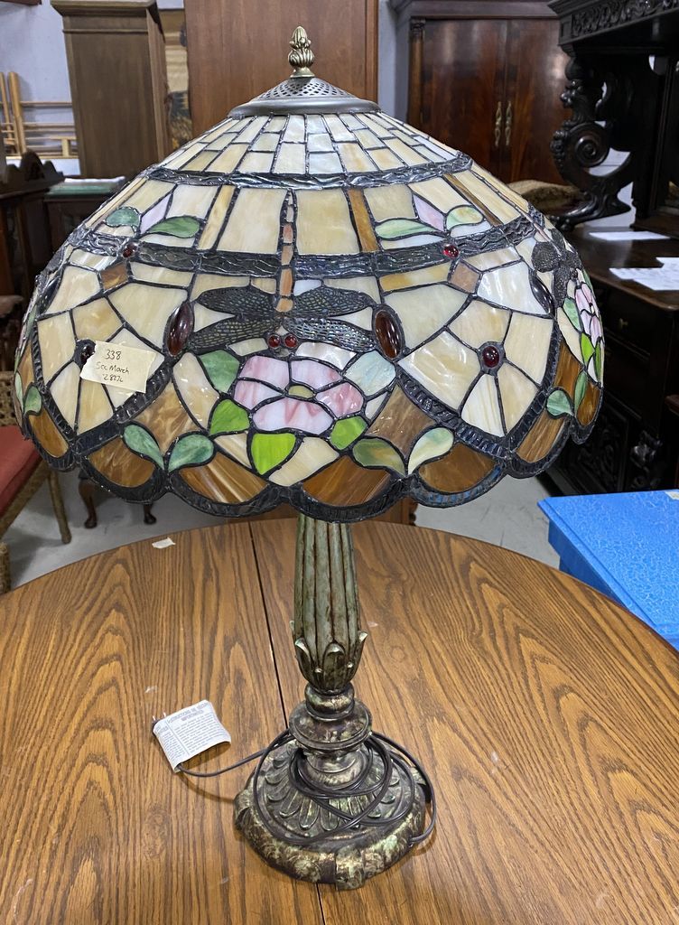 Reproduction Stained Glass Style Lamp, dragonfly, 29"h. Reproduction Stained Glass Style Lamp, dragonfly, 29"h.