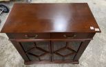 Modern Cherry Wine cabinet, two drawer, two door with wine section, 32"h., 32"w., 16"d. Location: 6th Row Modern Cherry Wine cabinet, two drawer, two door with wine section, 32"h., 32"w., 16"d. Location: 6th Row