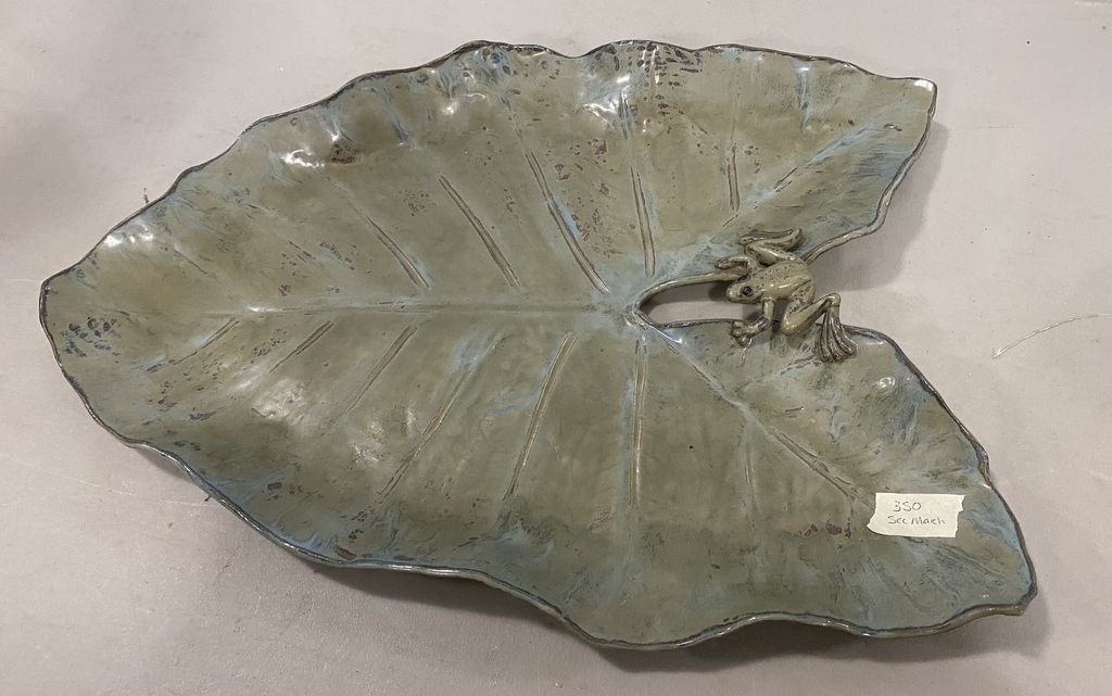 Mcinnis Bayou Pottery Leaf Dish, 20" Location Left Metal Shelves Mcinnis Bayou Pottery Leaf Dish, 20" Location Left Metal Shelves