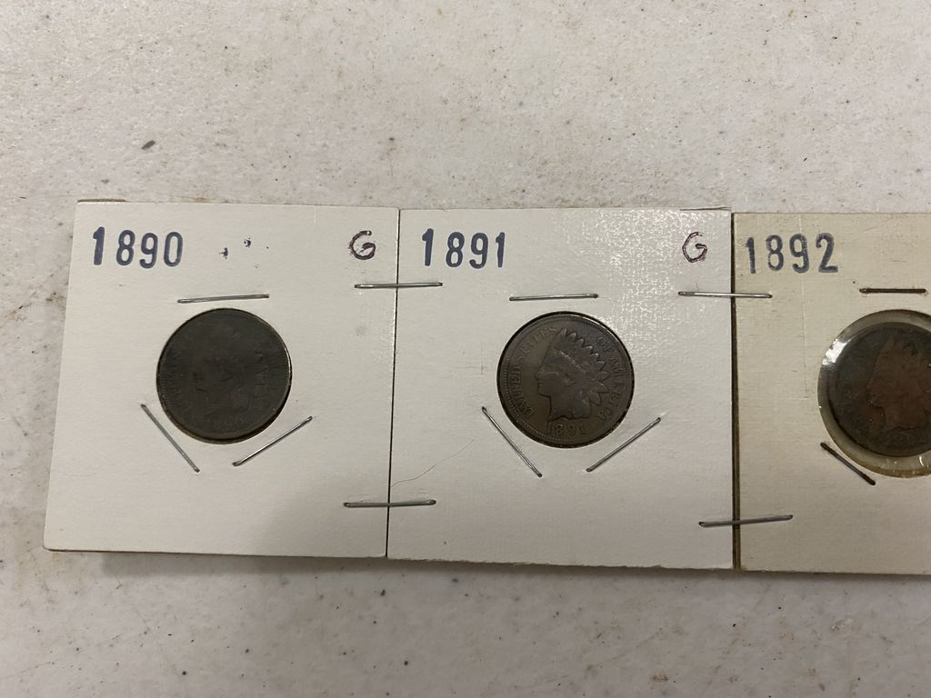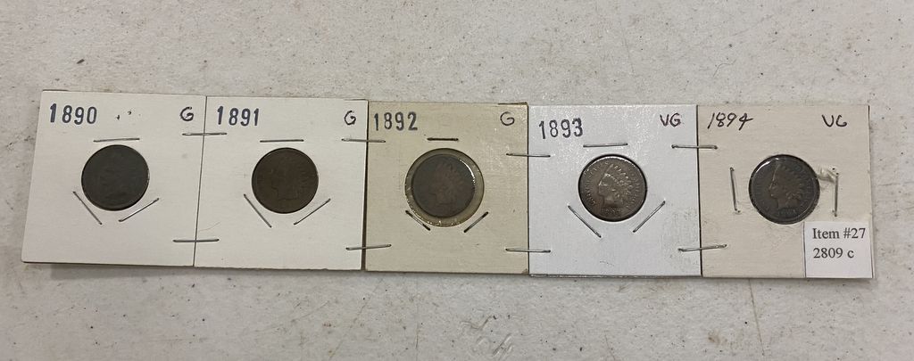 5 1890's Indian Cents, Dates 1890, 1891, 1892, 1893, 1894. 5 1890's Indian Cents, Dates 1890, 1891, 1892, 1893, 1894.