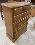 Late 20th Century Oak Five Drawer Chest, brass pulls, functional, no damage, 50"h. 36"w., 18"d. Location: 2nd Row Late 20th Century Oak Five Drawer Chest, brass pulls, functional, no damage, 50"h. 36"w., 18"d. Location: 2nd Row