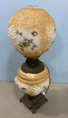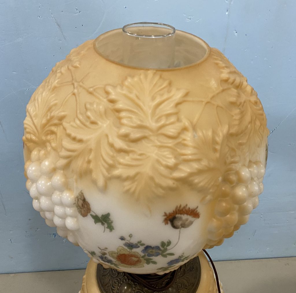 Gone with the Wind Globe Lamp, hand painted glass, footed, hurricane shade, 26"h. Gone with the Wind Globe Lamp, hand painted glass, footed, hurricane shade, 26"h.