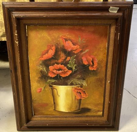 Mary Kyzar Thomas Still Life Painting, 1980, on board, framed, board is warped, 28"h., 24"w. Location Right Side of Room Wall. Location Right Wall Mary Kyzar Thomas Still Life Painting, 1980, on board, framed, board is warped, 28"h., 24"w. Location Right Side of Room Wall. Location Right Wall