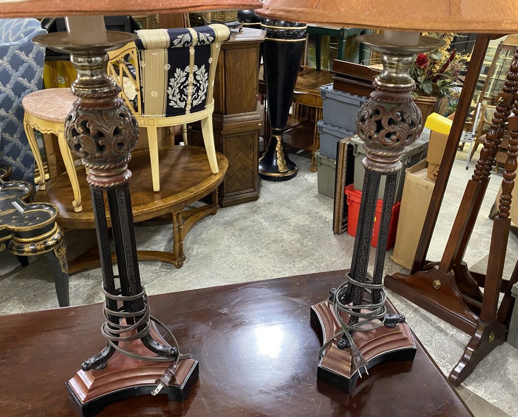 Pair of Decorative Lamps, new shades, good condition, 36"h. Location: 3rd Row Pair of Decorative Lamps, new shades, good condition, 36"h. Location: 3rd Row