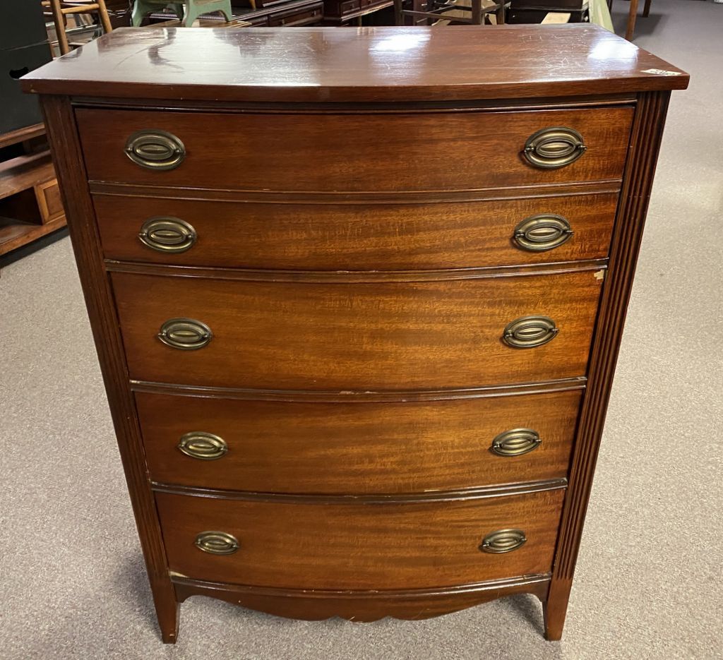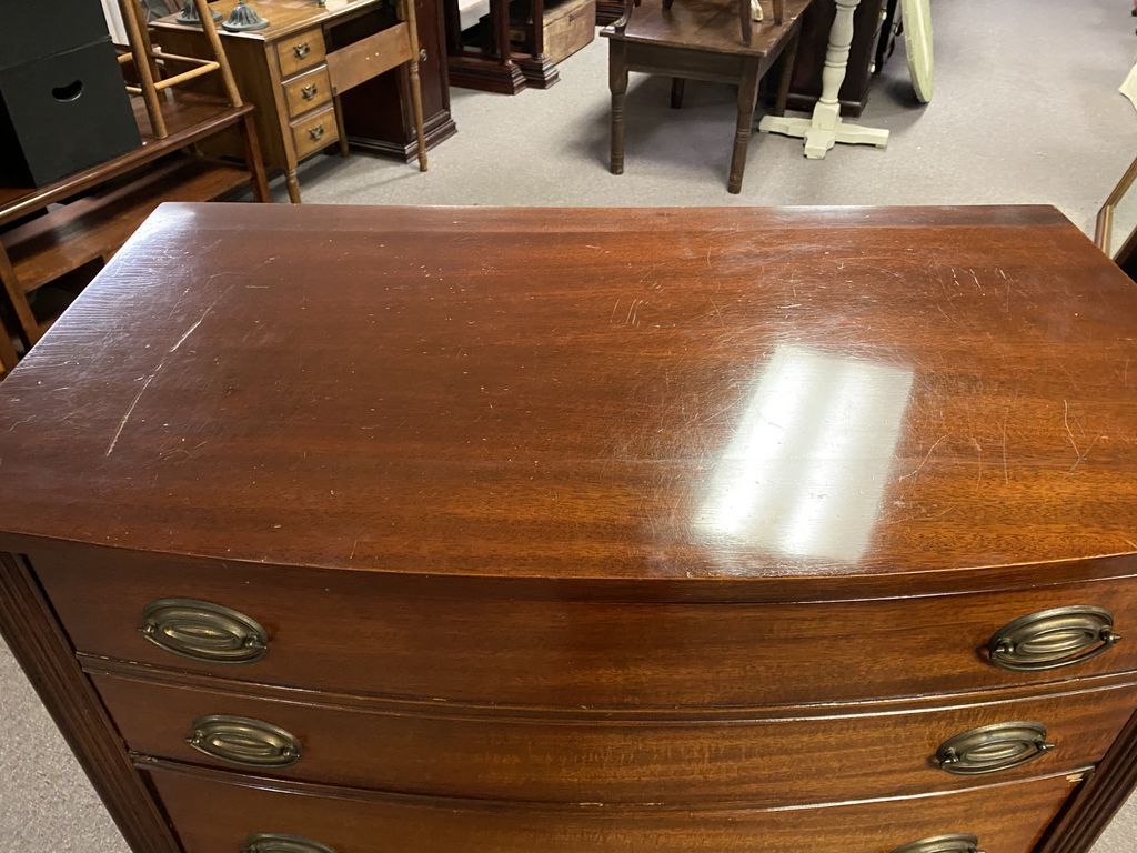 Duncan Phyfe Mahogany Chest of Drawers, some small veneer chips on drawers, four drawers, 46"h., 34"w. 19"d. Location: 5th Row Duncan Phyfe Mahogany Chest of Drawers, some small veneer chips on drawers, four drawers, 46"h., 34"w. 19"d. Location: 5th Row