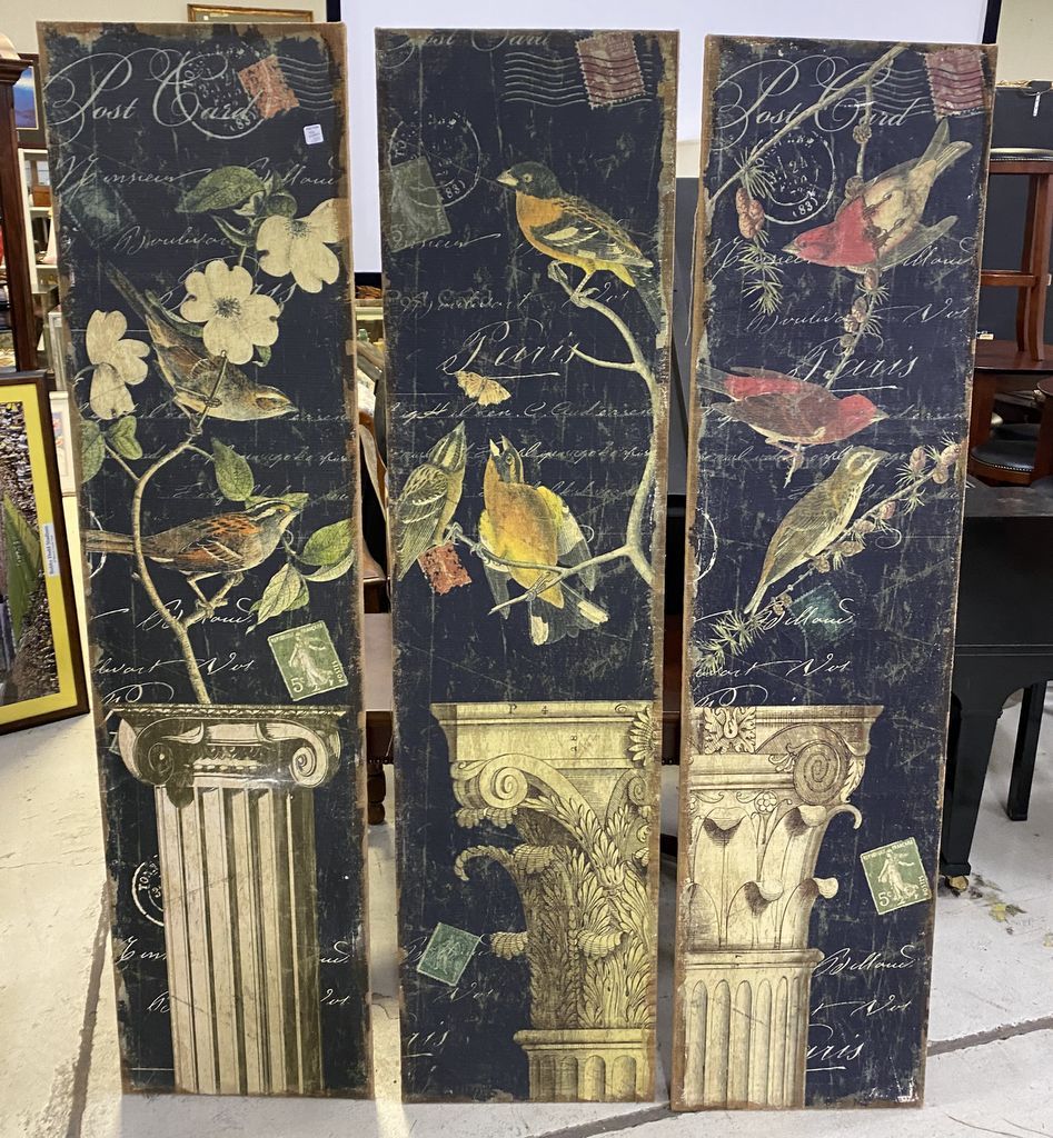 Three Burlap Grecian Style Panels , modern decor, 72"h., 18"w. Three Burlap Grecian Style Panels , modern decor, 72"h., 18"w.