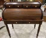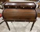 1970's-80's Pine Farm House Roll Top Desk, porcelain knobs, drawers, primitive style, 43"h., 40"w., 21"d. Location: 5th Row 1970's-80's Pine Farm House Roll Top Desk, porcelain knobs, drawers, primitive style, 43"h., 40"w., 21"d. Location: 5th Row