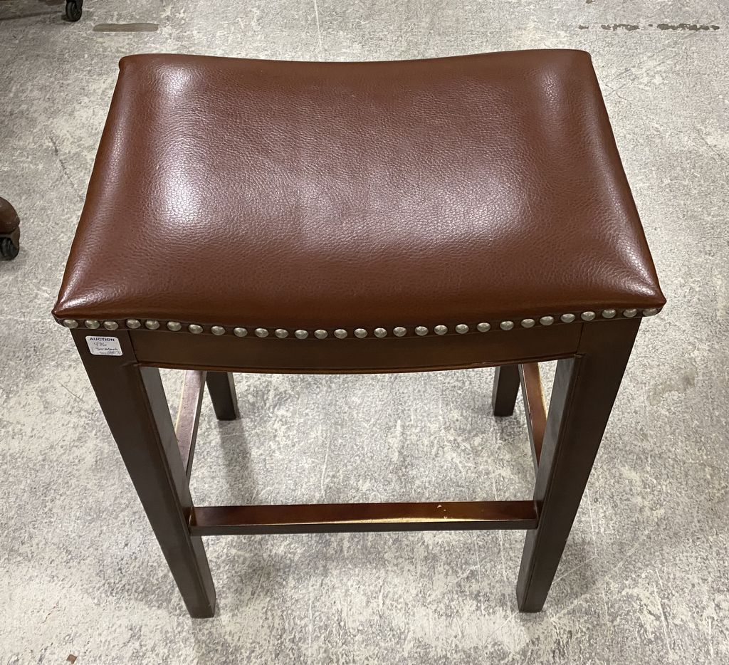 Single Brown Leather Cushion Bar Stool, 29"h. Single Brown Leather Cushion Bar Stool, 29"h.