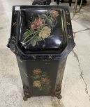 Vintage Black Tole Coal Hod, floral, 24"h. Location: 6th Row Vintage Black Tole Coal Hod, floral, 24"h. Location: 6th Row