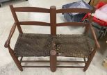 Painted Primitive Style Double Chair Bench, painted red, seat is dry rotted, 30"h., 35"w. Location: 2nd Row Painted Primitive Style Double Chair Bench, painted red, seat is dry rotted, 30"h., 35"w. Location: 2nd Row