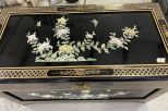 Chinese Black Lacquer Wedding Trunk, mother of pearl, lift top with sliding tray, good condition, 22"h. 40"w. 20"d. Location: 2nd Row Chinese Black Lacquer Wedding Trunk, mother of pearl, lift top with sliding tray, good condition, 22"h. 40"w. 20"d. Location: 2nd Row