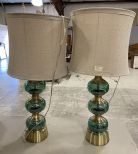 Pair of Contemporary Brass and Glass Lamps, 35"h. Location: 2nd Row Pair of Contemporary Brass and Glass Lamps, 35"h. Location: 2nd Row