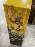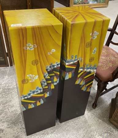 Pair of Painted Asian Style Pedestals stands, 39"h., 11"w. Location: 4th Row Pair of Painted Asian Style Pedestals stands, 39"h., 11"w. Location: 4th Row