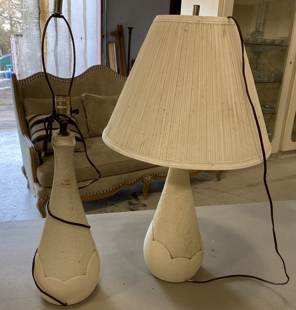 Pair of Pottery Vase Lamps, one has shade, 29"h. Pair of Pottery Vase Lamps, one has shade, 29"h.