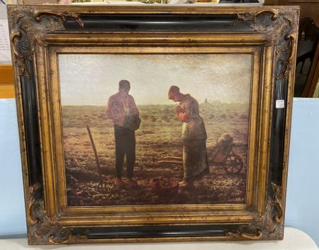 Faux Painting of Farming Couple Framed, on board, 31"h., 35"w. Location: Back Wall Faux Painting of Farming Couple Framed, on board, 31"h., 35"w. Location: Back Wall