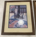 Two Framed Prints of Cats, matted, framed. Location Art Back Wall Two Framed Prints of Cats, matted, framed. Location Art Back Wall
