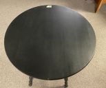 Round Spool Leg Lamp Table, dark finish, light wear, 28"h., 24"dia. Location Right Wall Round Spool Leg Lamp Table, dark finish, light wear, 28"h., 24"dia. Location Right Wall