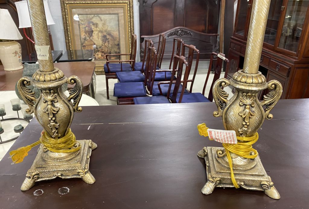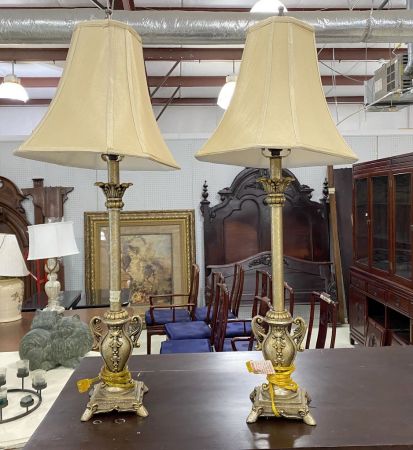 Pair of Modern Candle Stick Lamps, urn base footed, 35"h. Pair of Modern Candle Stick Lamps, urn base footed, 35"h.
