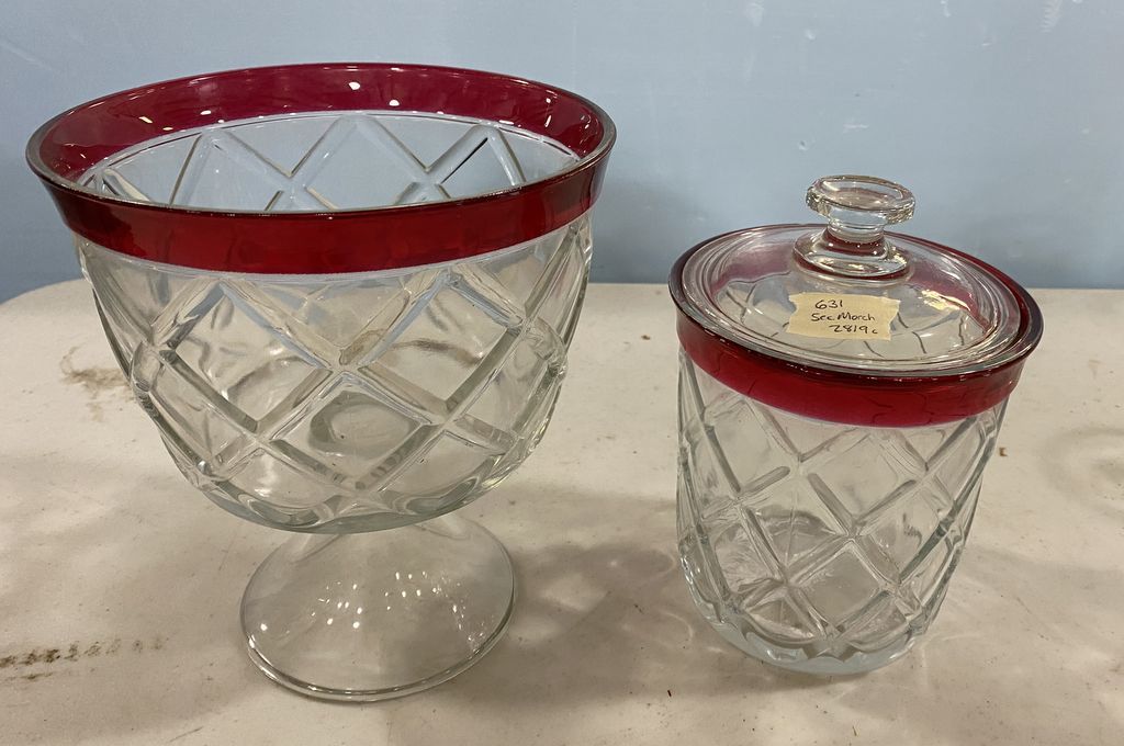 631 Red Rimmed Compote and Red Rimmed Candy Jar